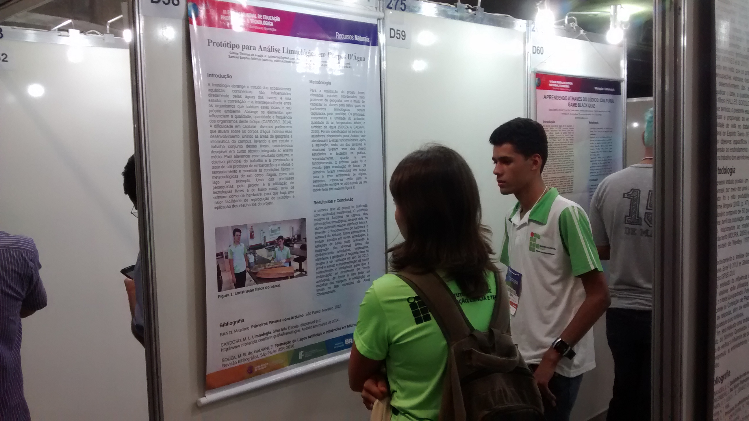 Os alunos Gilmar Thomas de Araújo Junior e Ivan Luis Yaiti Hoga, acompanhados pelo orientador, professor Olavo José Luiz Junior, representaram os estudantes componentes do projeto BARQ-INOS do grupo ifinos, e apresentaram um poster sobre o projeto no III Fórum Mundial de Educação Profissional e Tecnológica realizado em Recife-PE. Foi uma excelente oportunidade para compartilhar informações, visualizar projetos e conhecer estudantes e professores de instituições tecnológicas de todo o Brasil e outros países da América Latina. O poster está disponível aqui para visualização.