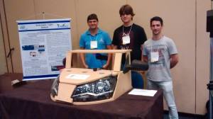 O estudante do curso de Tecnologia em Análise e Desenvolvimento de Sistemas do IFPR Campus Assis Chateaubriand, Rodrigo Gallert, acompanhado dos professores Olavo José Luiz Junior e Darlan Roque Dapieve, participou do V Brazilian Symposium on Computing Systems Engineering da Sociedade Brasileira de Computação em Foz do Iguaçu. O aluno apresentou seu protótipo chamado de ALS (Automatic Light Switch), o qual propõe o controle automático das luzes e retrovisores do veículo a partir da luminosidade que incide do ambiente e dos veículos que trafegam em sentido contrário ou atrás do próprio carro. A primeira fase da competição contou com a submissão de 140 trabalhos de todo o país, dos quais 60 foram escolhidos para receber um microcontrolador Intel Galileo Gen2 para desenvolver o projeto. A partir do relatório do desenvolvimento, os 33 melhores trabalhos foram selecionados para apresentação durente o SBESC, sendo 32 trabalhos de diversas universidades do país, e o ALS, único representando os Institutos Federais. O coordenador da competição comentou com o grupo sobre a relevância das pesquisas com Carros Inteligentes, que tem sido fomentada pela Intel, e convidou o estudante a enviar um novo trabalho para a competição de 2016, que terá a fase final realizada em João Pessoa na Paraíba, durante o VI SBESC.