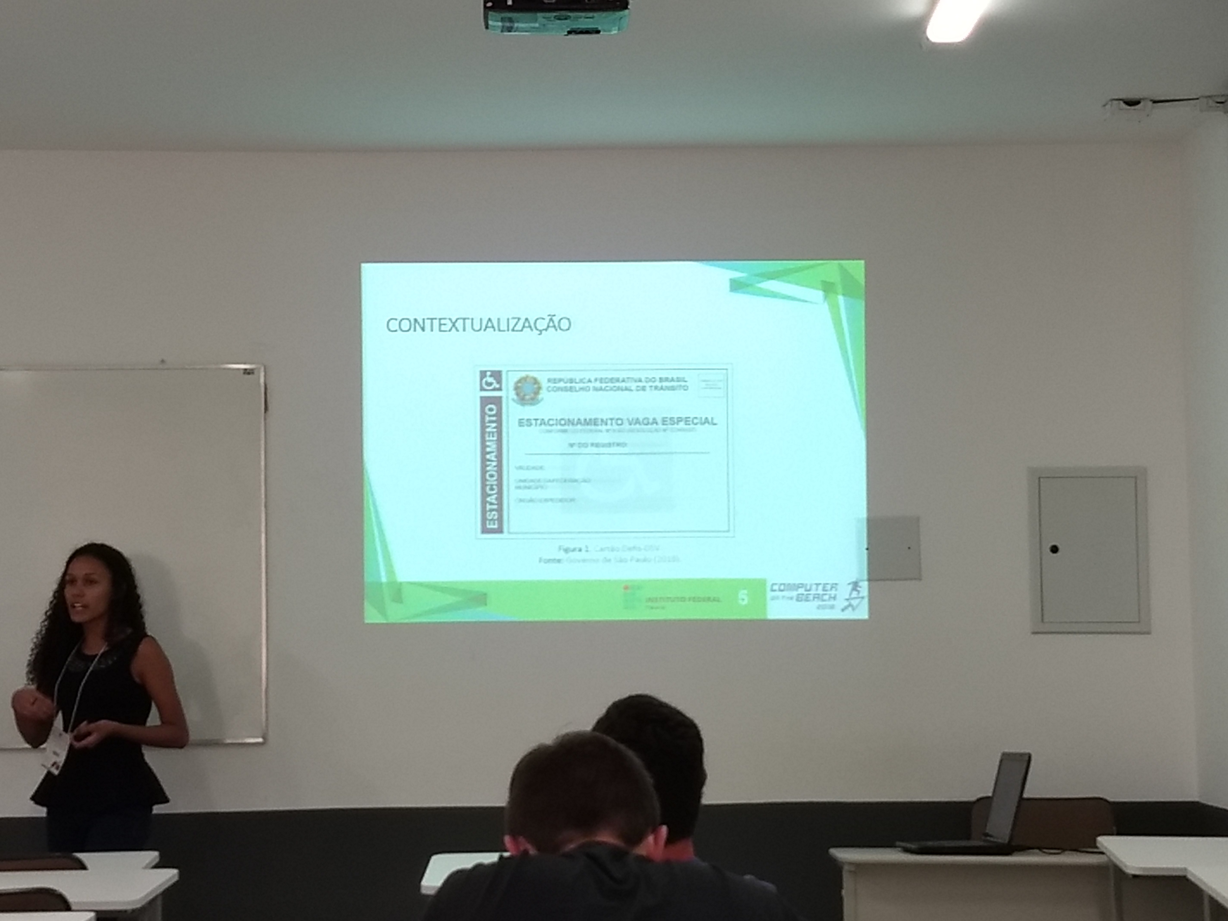 Após sua apresentação para uma banca julgadora, o trabalho “Desenvolvimento de um sistema diferenciado de reconhecimento de veículos destinados a vagas especiais” foi escolhido o melhor trabalho da Trilha de Pesquisa.