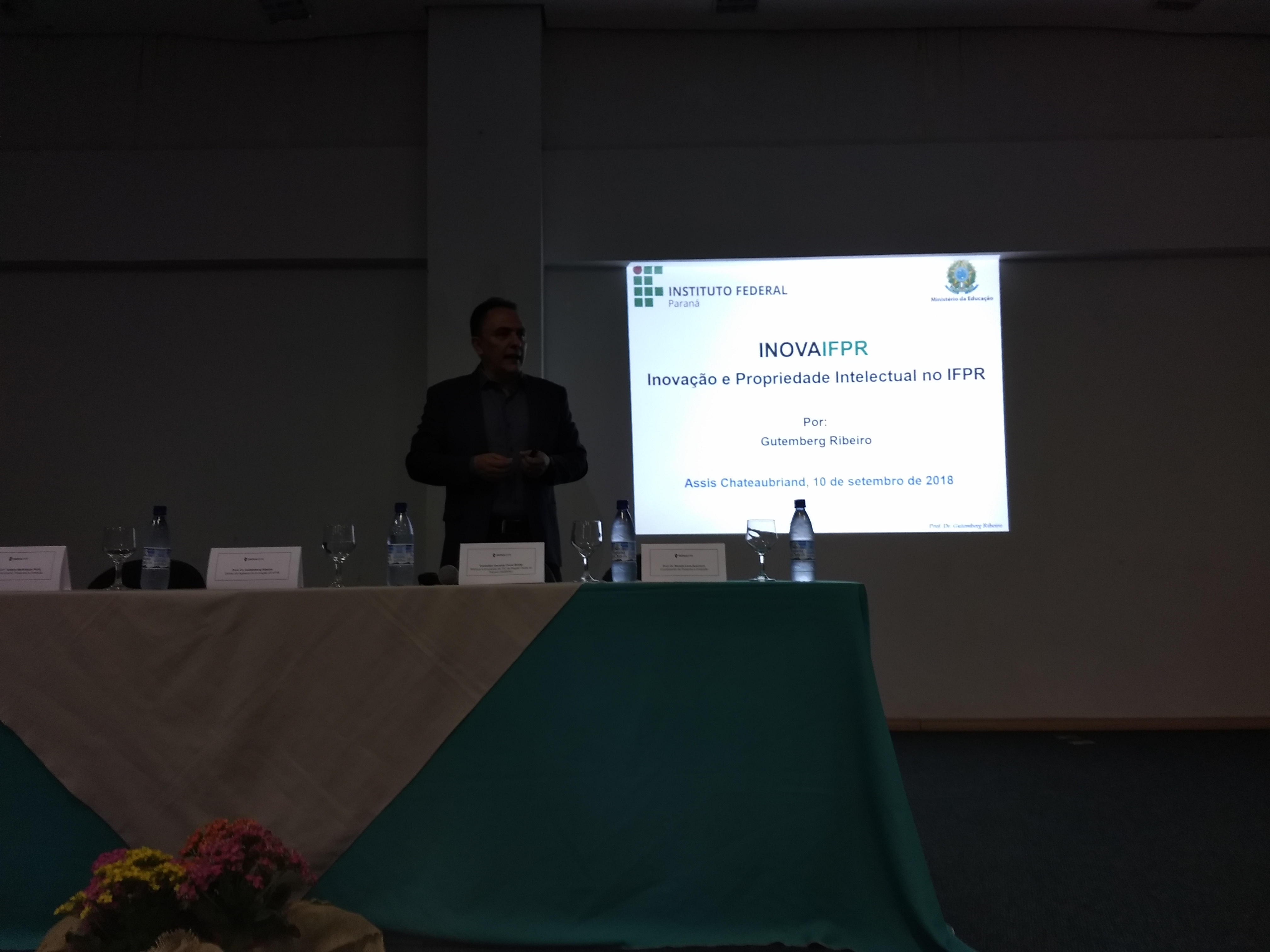 Foi um dia inteiro destinado para a discussão da inovação tecnológica no contexto de Assis Chateaubriand e do Campus. A Agência de Inovação da Reitoria do IFPR (AGIF) prestigiou o evento por meio da presença do seu Diretor, o professor Dr. Gutemberg Ribeiro, que ministrou a Palestra “A Propriedade Intelectual no IFPR”.