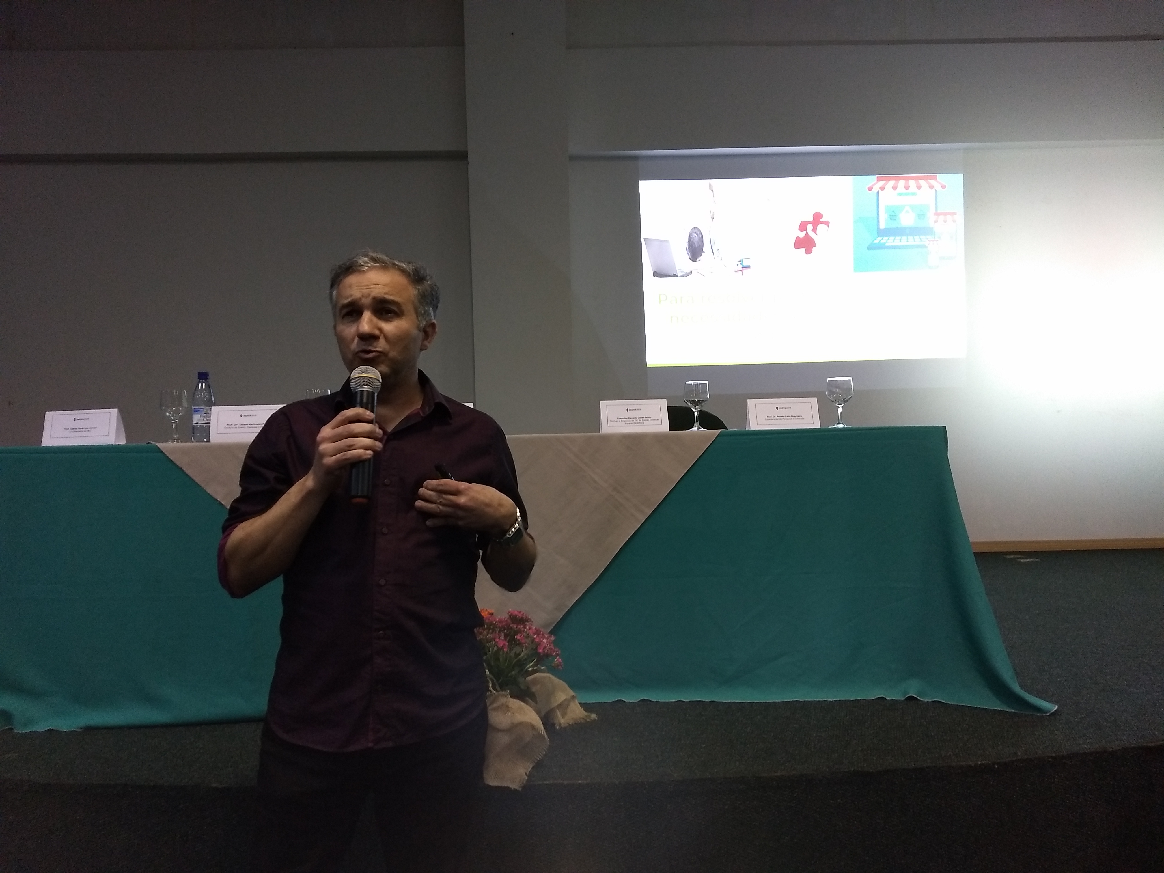 Fechando o evento, no período da noite tivemos a palestra “Ecossistemas de inovação e oportunidades da Inovação no Oeste do Paraná” com o senhor Carlos Alberto Schulze, diretor Técnico da Fundetec de Cascavel.