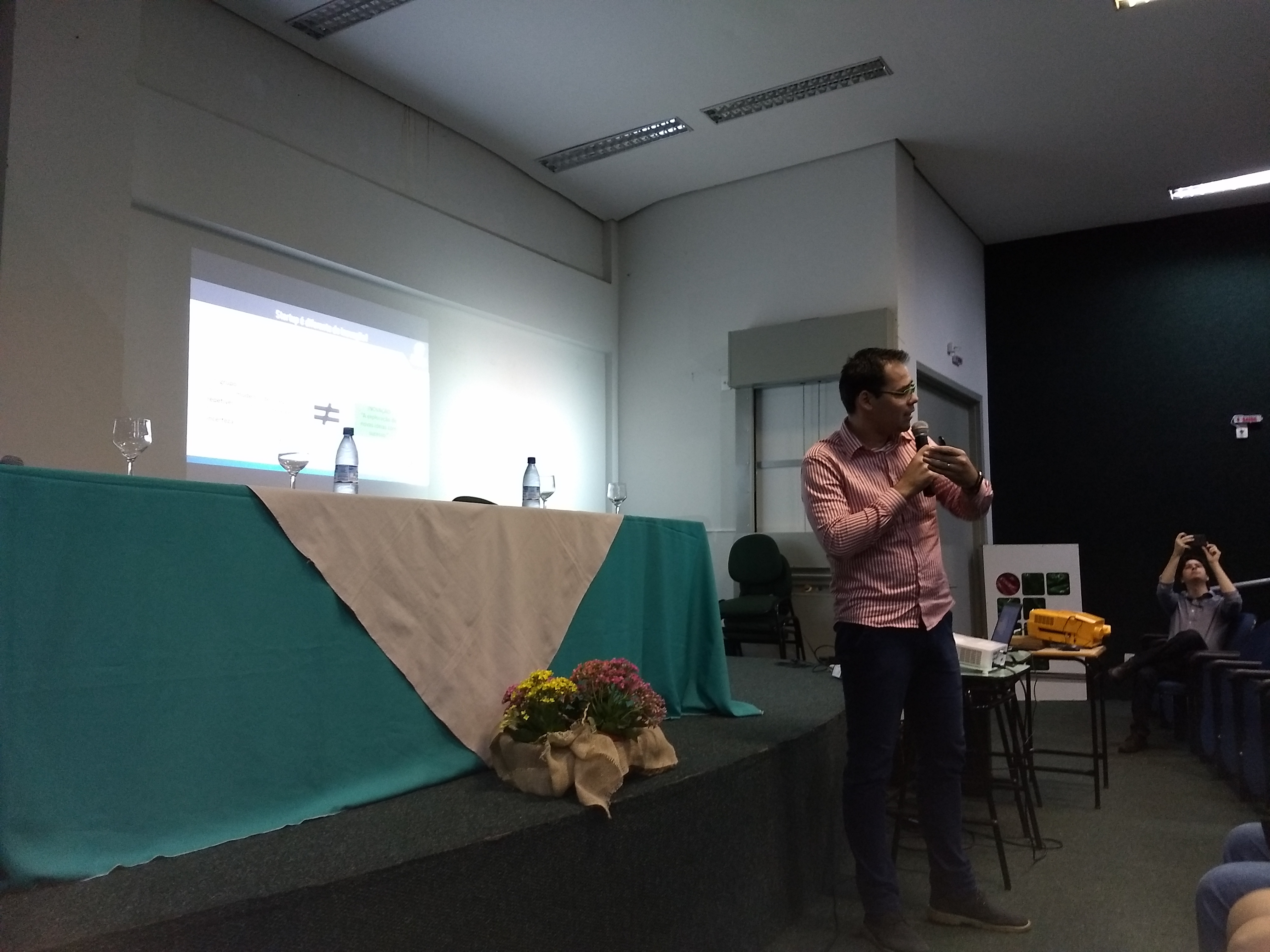 Na sequência o evento contou com a palestra “Startup: como iniciar negócios inovadores” proferida pelo consultor do Sebrae Cascavel, especialista em StartUps, o senhor Osvaldo César Brotto, seguido da apresentação, por parte do professor Olavo José Luiz Junior, coordenador do NIT, das duas StartUps nascentes no CitAC: A Zapiá, dos alunos João Vitor Borges, Samuel Stephan Milczuk e William Martins Coelho e a BaconWare, dos alunos João Rodrigo Pietro e Luciano Raizi, ambas de estudantes que já se formaram em cursos técnicos do IFPR e agora são alunos do nosso curso de Tecnologia em Análise e Desenvolvimento de Sistemas.