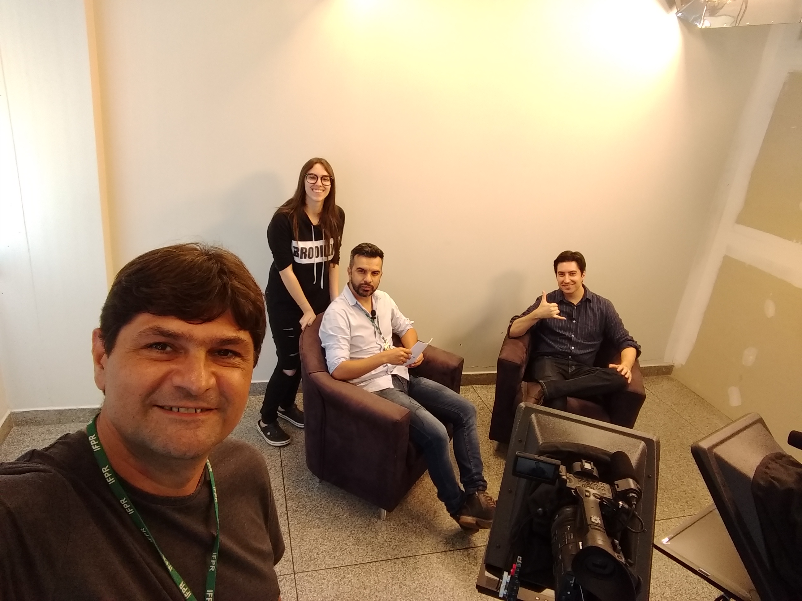 A equipe buscou então o auxílio do IFPR Campus Cascavel, que disponibilizou sua estrutura de Estúdio de Gravação, aliado ao grande auxílio do Servidor Rodrigo da Silva, especialista na operação dos equipamentos. Agradecemos imensamente ao Rodrigo e ao Campus Cascavel.