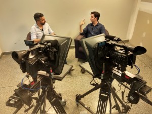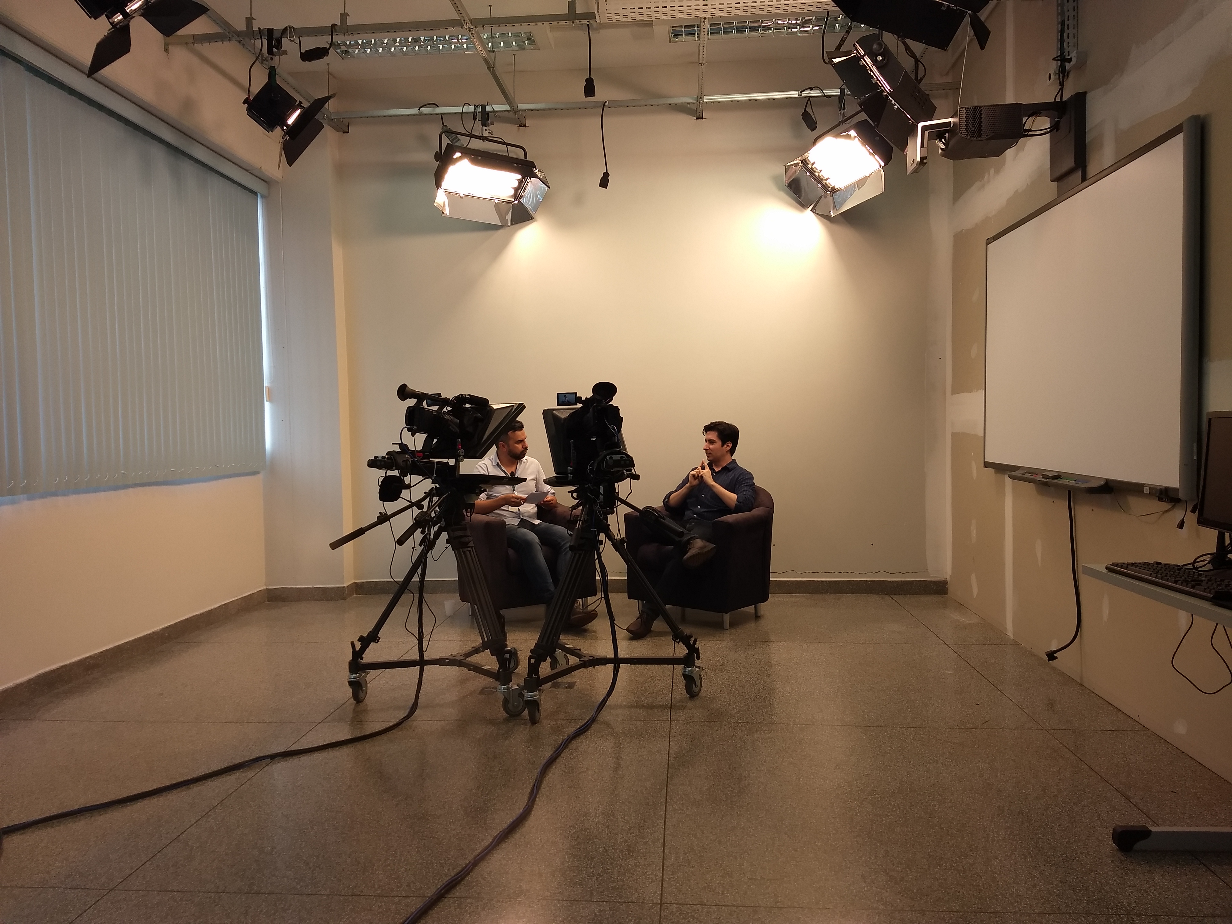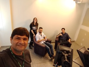 Nessa primeira sessão os entrevistados foram os professores, pesquisadores do ifinos, Renato Lada Guerreiro e Olavo José Luiz Junior, e a estudante Ana Flora Spada Bim, aluna do 3º ano do curso Técnico em Informática Integrado ao Ensino Médio. O resultado foi a gravação de um material muito profissional que será utilizado para colocar o Talk Show do professor Adrian no ar.